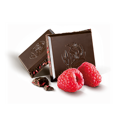 O asociere interesantă între bucăți de zmeură și ciocolată neagră cu 54% cacao. O rețetă exclusivă creată de Maestrul Ciocolatier cu zmeură Glen Ample.