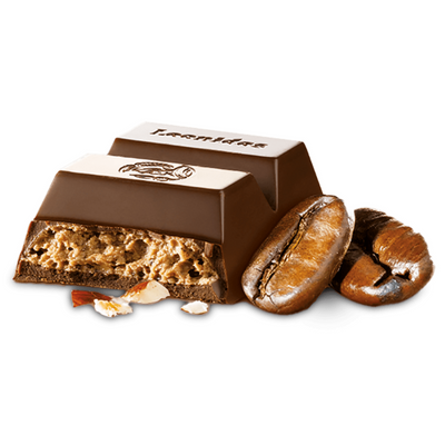Baton ciocolată neagră belgiană, cu cremă pralinată și cu aromă de cafea.