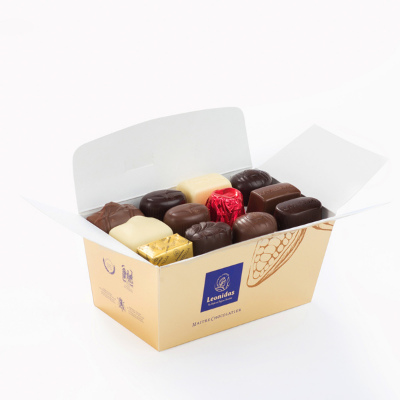 O selecție de 33 de praline din ciocolată belgiană de cea mai bună calitate, în cutie standard. O alegere excelentă, fie că vrei să le oferi cadou, fie că vrei să le păstrezi pentru momentele tale de răsfăț. Punga de cadou și hârtia din mătase sunt incluse. Poza este cu titlu de prezentare, iar pralinele și panglica pot diferi.