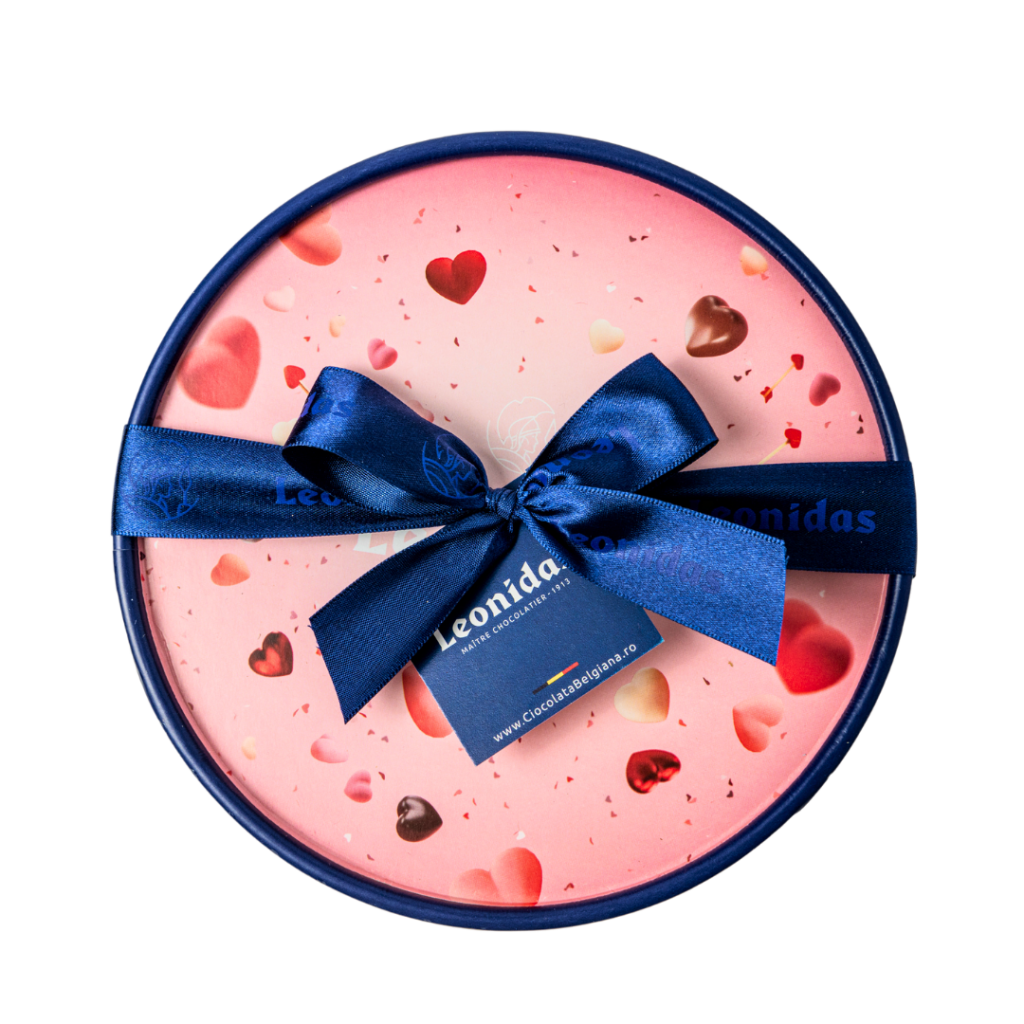 Cutie Coeur Dora, elegantă, cu sleeve roz cu iniomioare. Cutie pe două straturi, fiecare etaj având câte 11 praline asortate, delicioase! Coeur Dora este cutia perfectă pentru a fi oferită cadou de Ziua Îndrăgostiților sau Ziua Femeii.