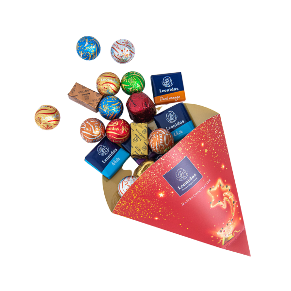 Con Noel Leonidas conține 230g de praline și globulețe asortate. Con Noel este un cadou perfect de oferit în perioada sărbătorilor. Poza este cu titlu de prezentare iar design-ul ambalajului și pralinele pot diferi, în funcție de stoc.