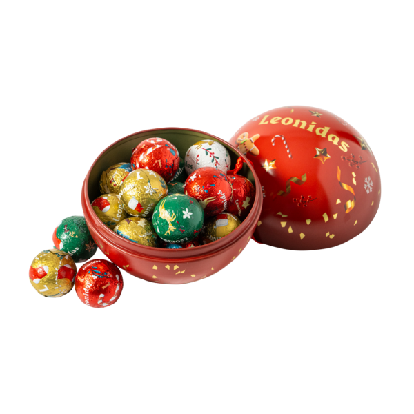 Glob Metal Noel Leonidas conține 17 globuri din ciocolată belgiană și este cadoul și accesoriul perfect de pus sub brad sau în brad. :) Savurează globulețele din interior și apoi agață-l în brad sau ascunde în interior un alt cadou sau un bilețel surpriză pentru cei dragi și refolosește-l și anii următori. Punga de cadou Leonidas și hârtia din mătase sunt incluse. Poza este cu titlu de prezentare, iar pralinele și panglica pot diferi.