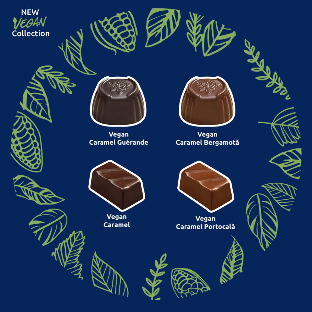 Ballotin-ul Mini Vegan Leonidas conține 16 praline din gama vegană/ de post! Gama vegană conține 4 praline cu umpluturi diferite, de caramel. Pralinele vegane, de post, sunt alegerea perfectă pentru cei care doresc să ofere (sau să se bucure) de plăcere fără a face compromisuri! Punga de cadou Leonidas și hârtia din mătase sunt incluse. Poza este cu titlu de prezentare, iar ambalajul și panglica pot diferi.