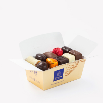 O selecție de 24 de praline din ciocolată belgiană de cea mai bună calitate, în cutie standard ballotin. O alegere excelentă, fie că vrei să le oferi cadou, fie că vrei să le păstrezi pentru momentele tale de răsfăț. Punga de cadou și hârtia din mătase sunt incluse. Poza este cu titlu de prezentare, iar pralinele și panglica pot diferi.