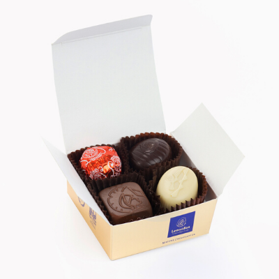 Ballotin de 4 praline asortate. Poza este cu titlu de prezentare iar pralinele pot diferi.