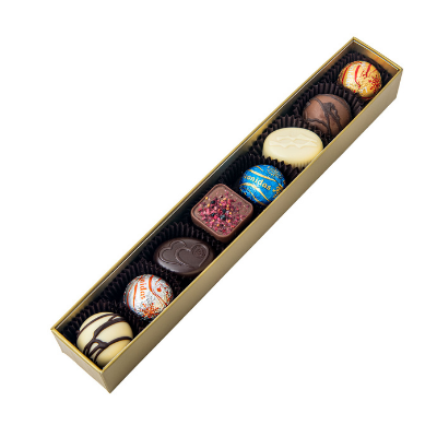 Rigleta Shiny Leonidas în cutie albă, conține 8 praline asortate și poate fi un cadou subtil și elegant, pentru perioada sărbătorilor. Poza este cu titlu de prezentare iar pralinele și panglica pot diferi.