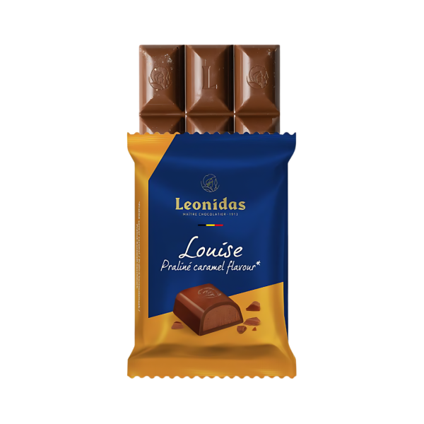 Tabletă Louise, din ciocolată cu lapte, umplută cu cremă pralinată cu aromă de caramel. Tableta conține 6 dreptunghiuri de ciocolată umplute cu o cremă realizată după delicioasa pralină Louise.