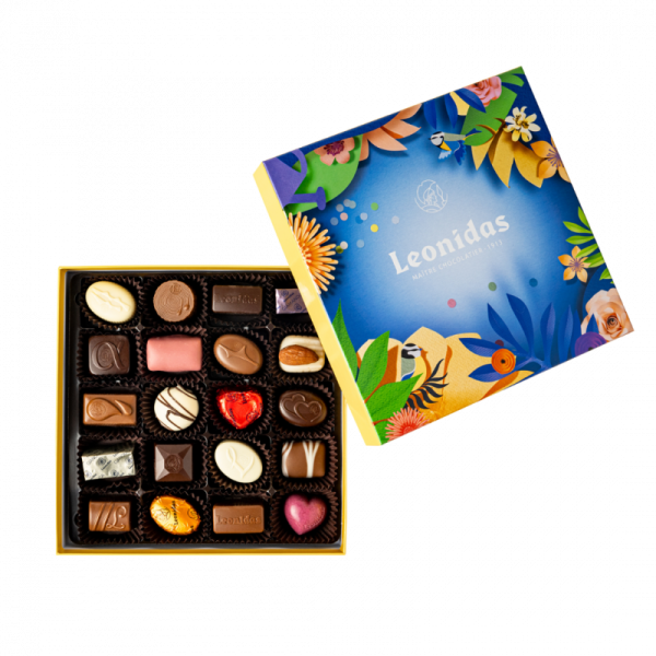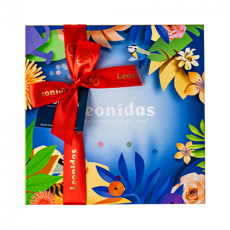 Zanzibar Flower Blue Leonidas conține o selecție de 16 praline asortate Leonidas, în cutie colorată, vibrantă, cu design floral 3D. Cutia cu praline din ciocolată belgiană, este perfectă pentru a fi oferită cadou. Pungă cadou Leonidas și hârtie mătase incluse. Poza este cu titlu de prezentare iar pralinele și panglica pot diferi în funcție de stoc.