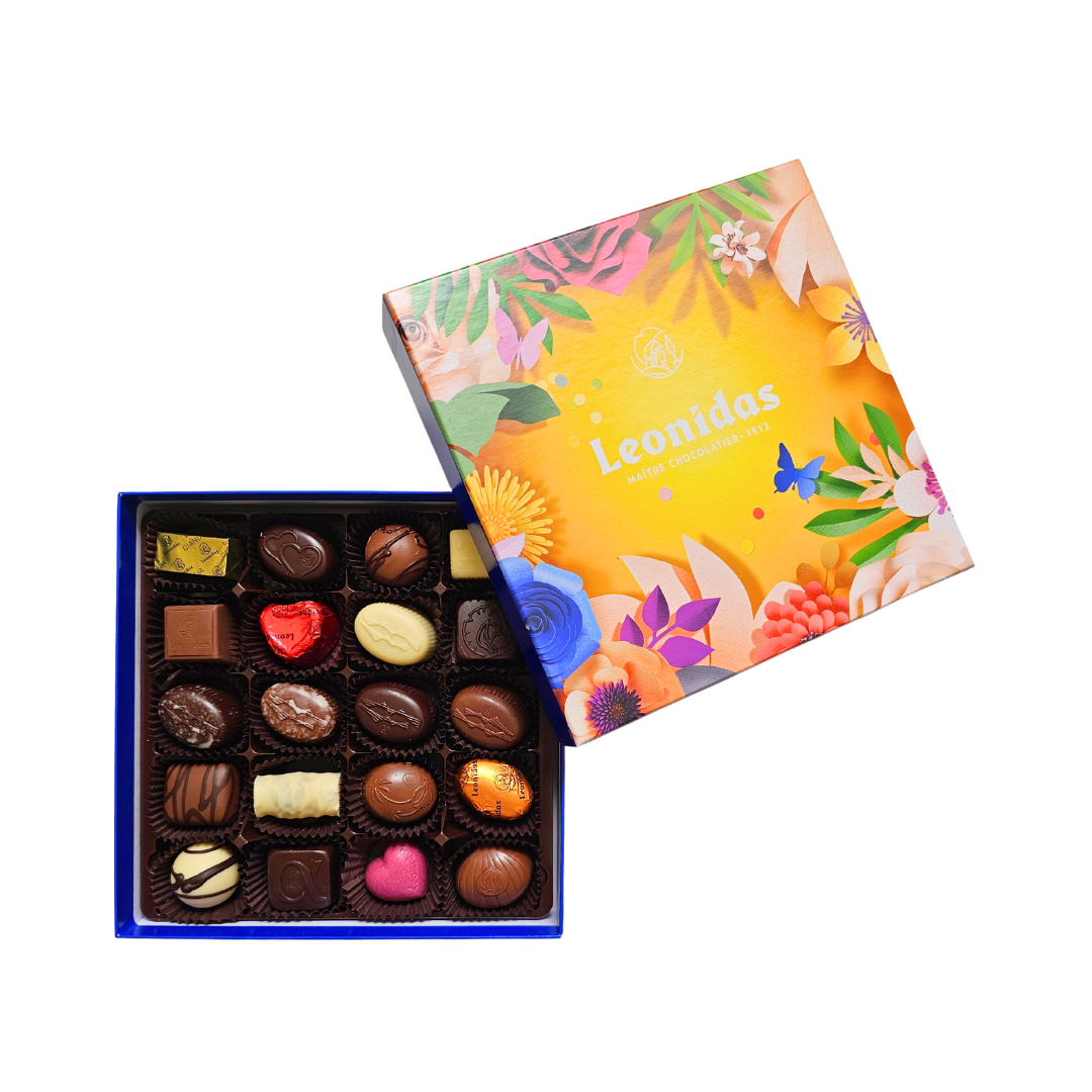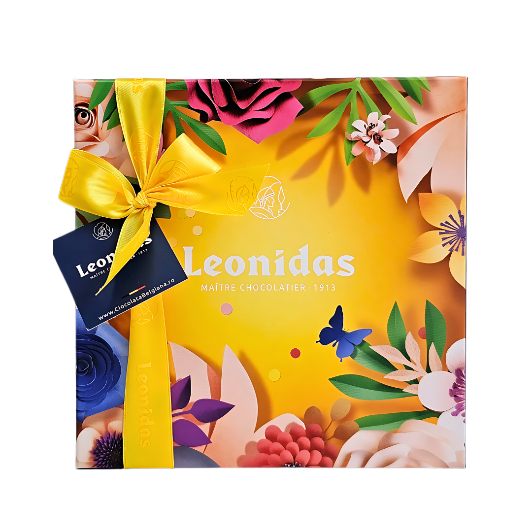 Zanzibar Flower Yellow Leonidas conține o selecție de 16 praline asortate Leonidas, în cutie colorată, vibrantă, cu design floral 3D. Cutia cu praline din ciocolată belgiană, este perfectă pentru a fi oferită cadou. Pungă cadou Leonidas și hârtie mătase incluse. Poza este cu titlu de prezentare iar pralinele și panglica pot diferi în funcție de stoc.